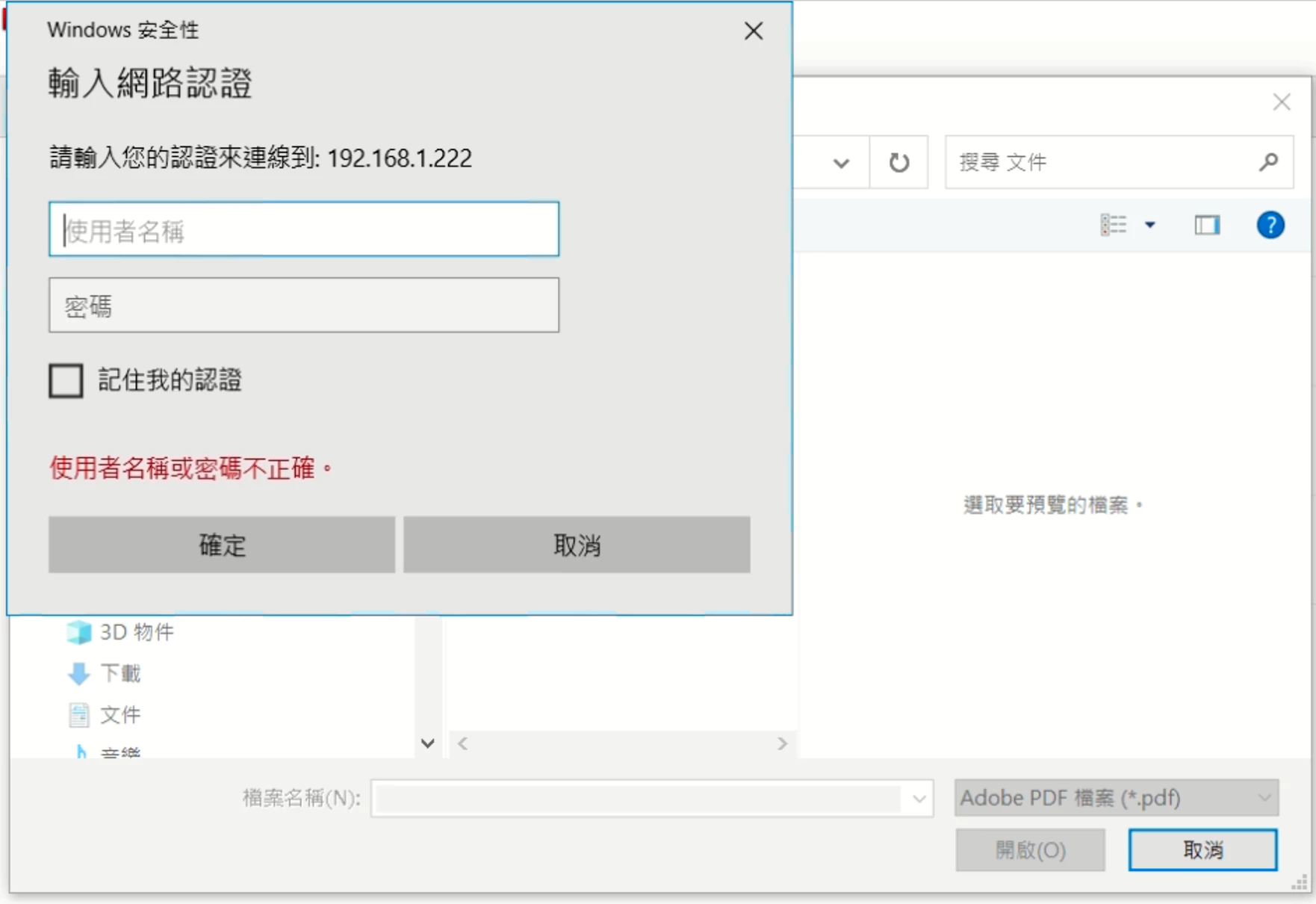 I need to open the NAS from Adobe Acrobat Reader DC and log in with the account password to open the PDF file.