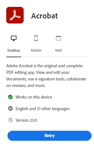 Just doesn't work, a year ago I was able to sign completely fine, use the app as intended, read, zoom, no issues. Now it just doesn't work, every time I try to sign it prompts up an error message or just takes an insanely long time to load. Starting up the program is a gamble between working and being stuck of loading. I tried uninstalling an reinstalling to hopefully fix my issues, and it just completely broke.