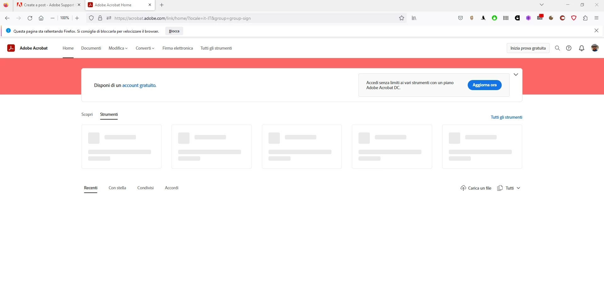 Dear all, I'm experiencing several issues when accessing Acrobat online tools. The webpage does not fully load and Firefox and other browsers show a popup message that the webpage cannot be loaded. The attached image shows what I see. I hop someone can help me. Thank you!