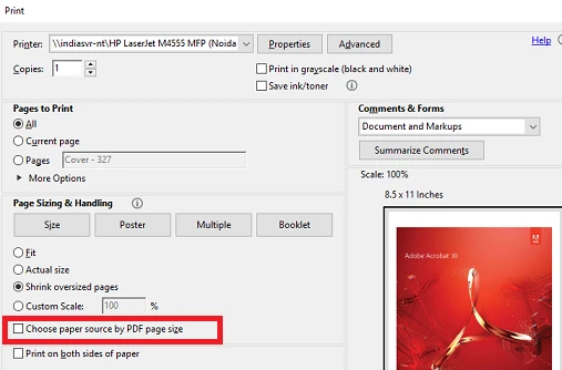 Greetings everyone, I would like to ask some help about enabling choose paper source by pdf page size. I developed an application using C# language to print pdf file using acrobat pdf reader. Is there any way to automatically put check mark on choose paper source by pdf page size automatically before it starts printing? Please help.