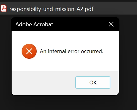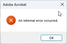 Acrobat Reader: "An internal error occurred" popup...