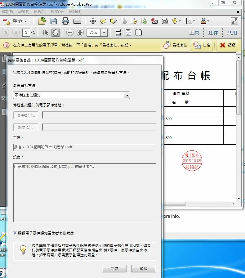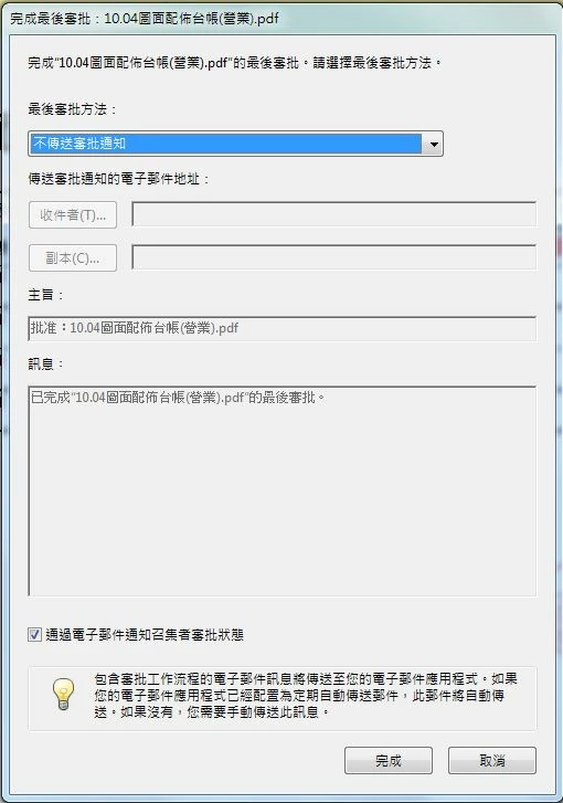 今日(10/4)更新後,審批(批准或最後審批)後,文件無法自動結束。(下述對話框會再次出現)