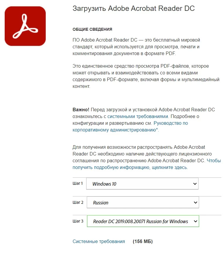 Acrobat Reader DC 2020 standalone installer (Russian)