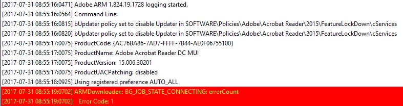 The AdobeARM.log file also shows that the update service is disabled