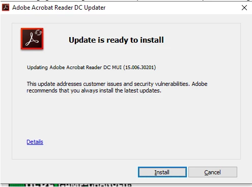 Acrobat Reader DC updates are disabled but user prompted to install update
