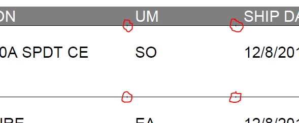 I am generating a PDF document using merge fields in a word document. The merge fields are inside of a table which has borders turned off ("No Borders"). In place of the border, there are small hash marks that appear around the document where column separation would normally occur. Screenshot attached for reference.