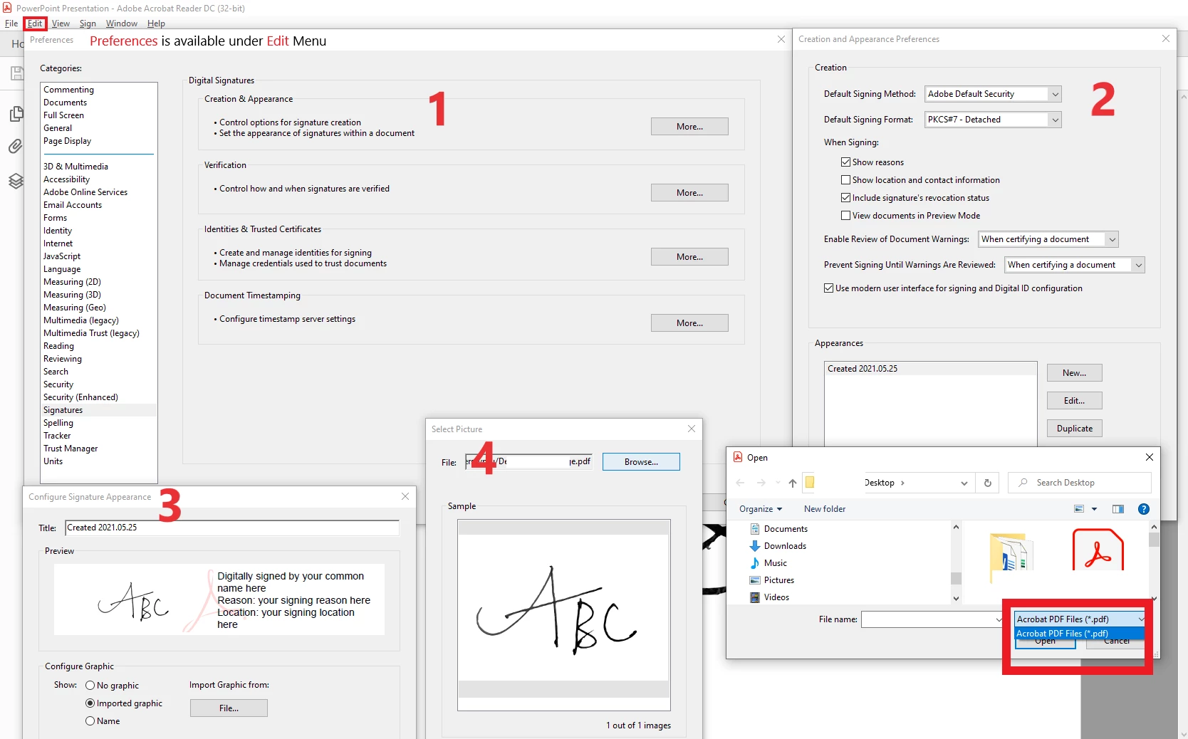 Acrobat reader does accept image formats but only .pdf while importing graphic for digital signature