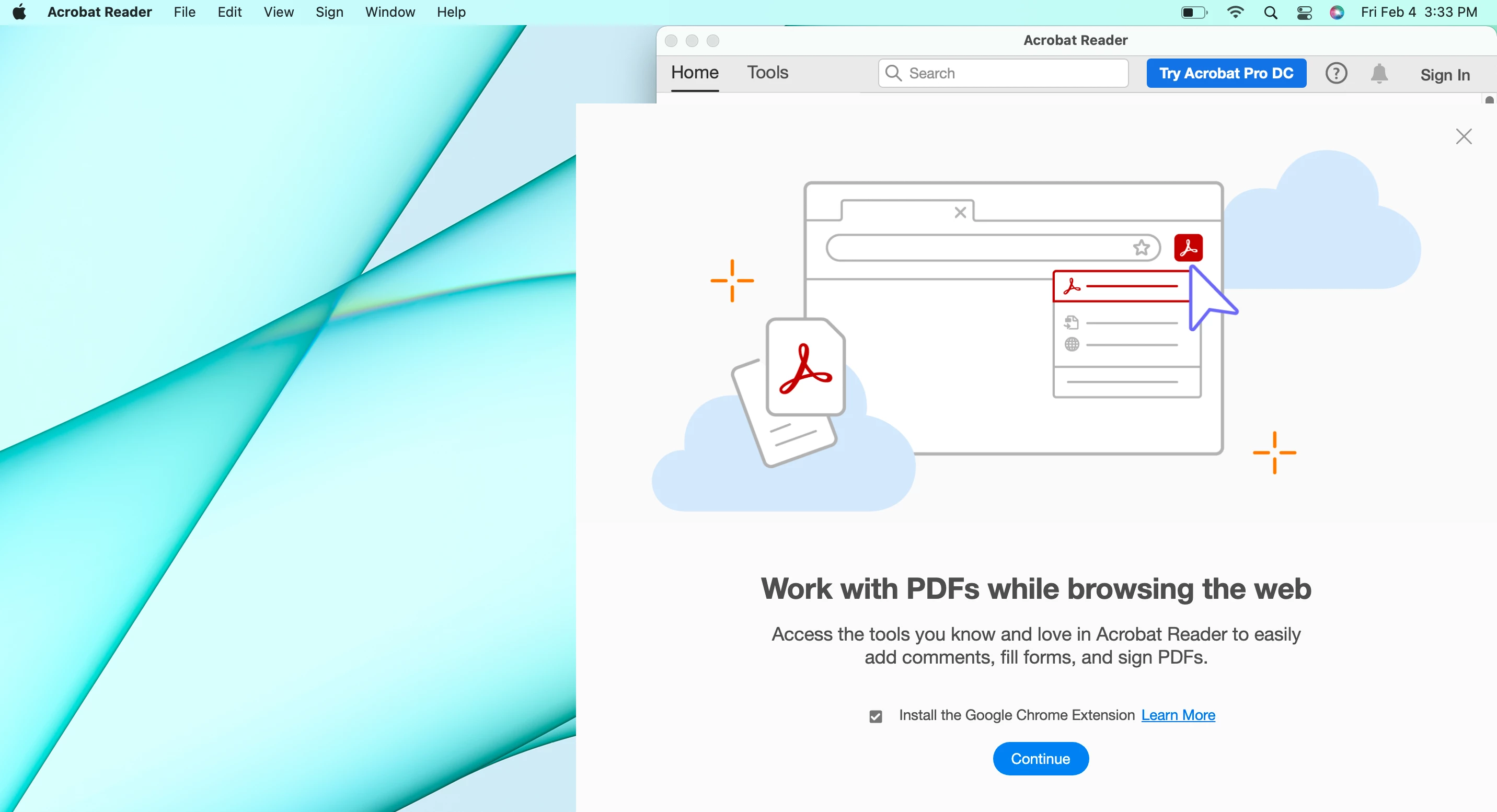Every time I start the acrobat reader app a window pops up with a prompt "Work with PDFs while browsing the web." See the screenshot.