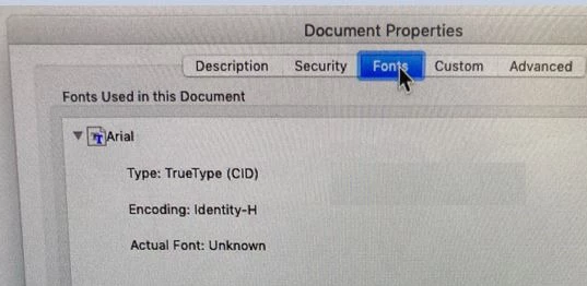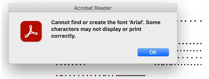 Acrobat reader mac - cannot find or create the font 'Arial'. Some characters may not ......