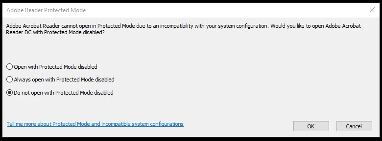 Acrobat Reader Win 10 1709 - Protected Mode?
