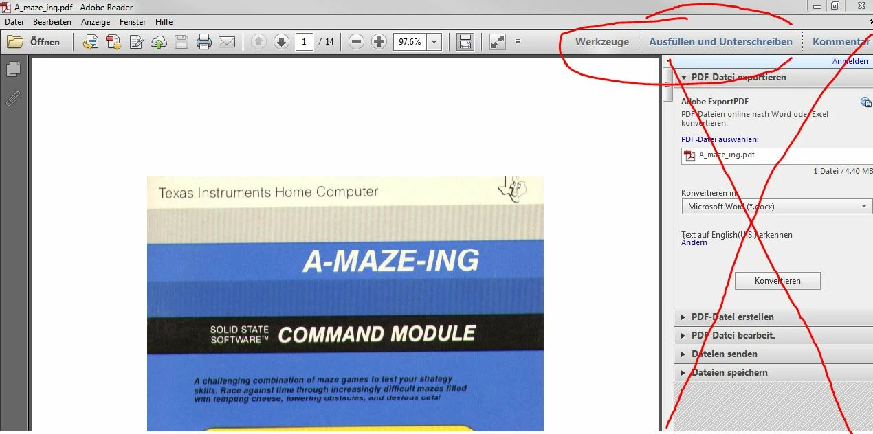 Acrobat Reades Tool menu