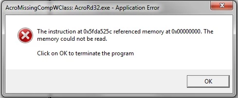 Acromissingcompwclass: AcroRD32.exe Application error