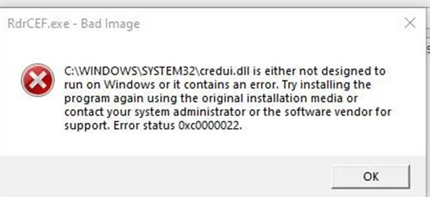 C:\Windows\System32\credui.dll is either not designed to run on Windows or it contains an error.