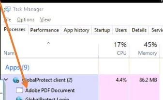 Adobe Acrobat Reader 21.001.20135 preventing users to connect to Global Protect
