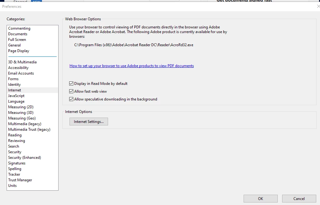 We've attached the Internet option in the current version of Adobe.