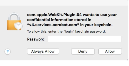 Every time I open a PDF with Adobe Acrobat Reader DC, the app keeps asking me for a password. I get the pop-up window as shown above.