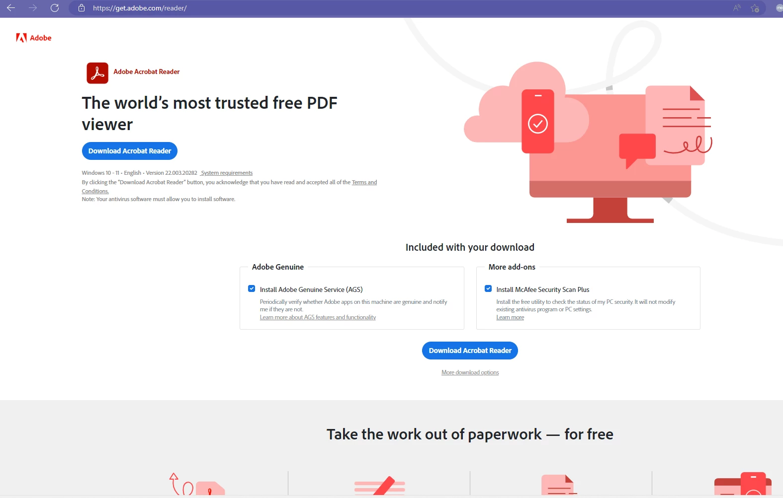 Adobe Acrobat Reader DC Force Installs Mcafee Software