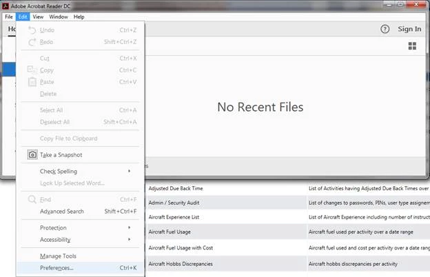 From Start menu All Programs - Start Acrobat Reader DC and select Edit - Preferences