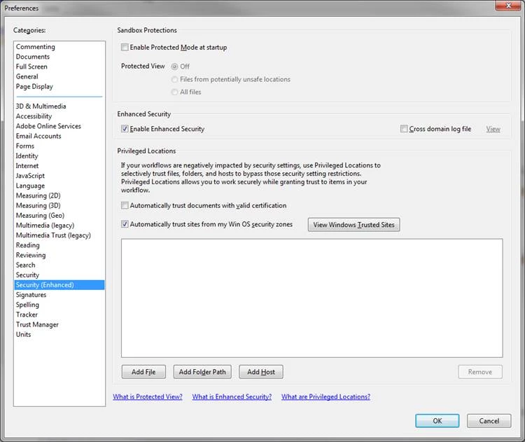 In Security (Enhanced), Un-check Enable Protected Mode at startup.