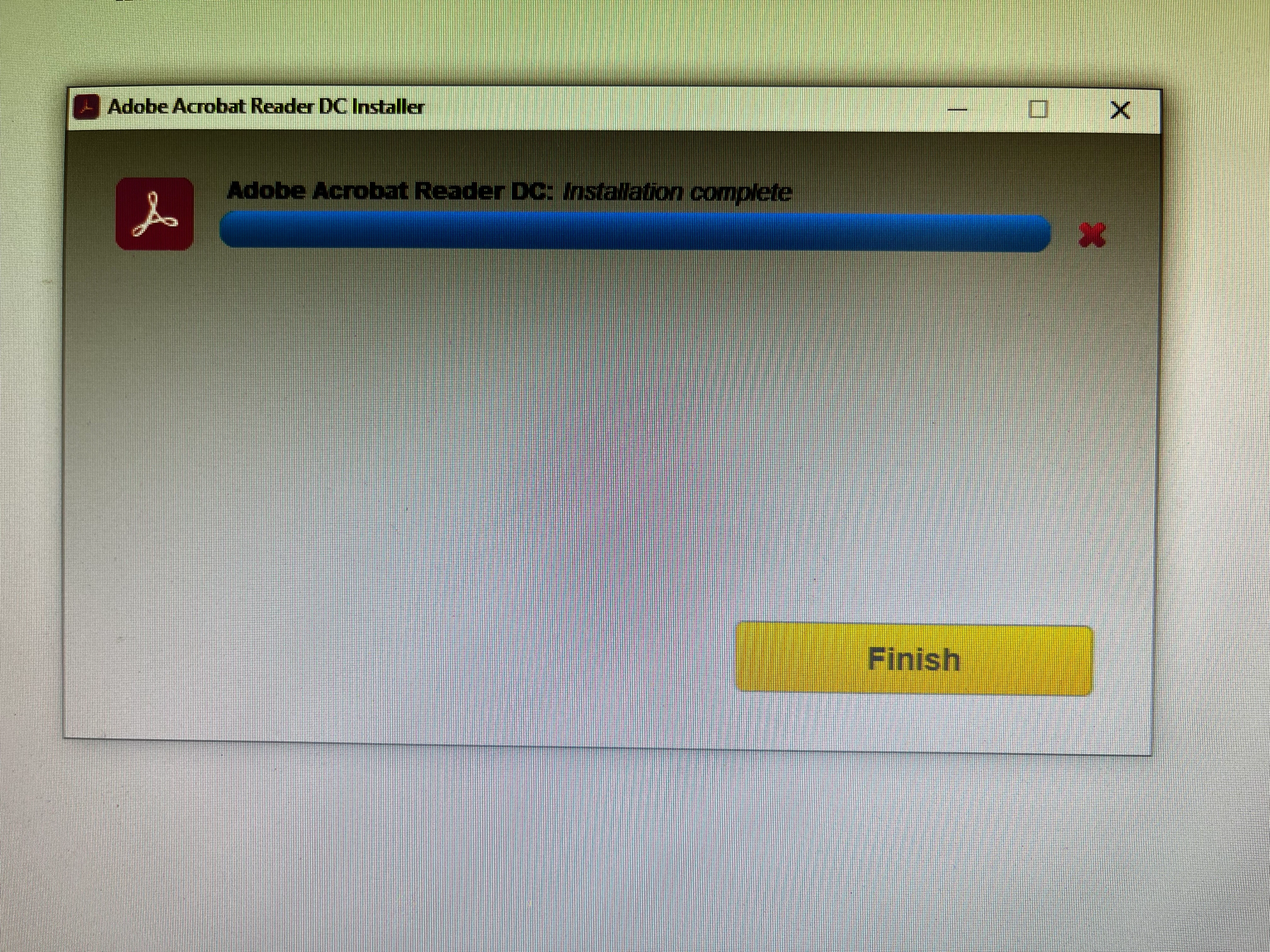 Just installed Windows 10 fresh, ran windows updates and driver updates. Download Adobe Reader DC from Adobe’s site and the installer at the end says “Adobe Acrobat Reader DC: Installation complete” but has a red “x” icon next to the completed status bar instead of a green checkmark. No error message or anything of value that might help me determine what the problem is.