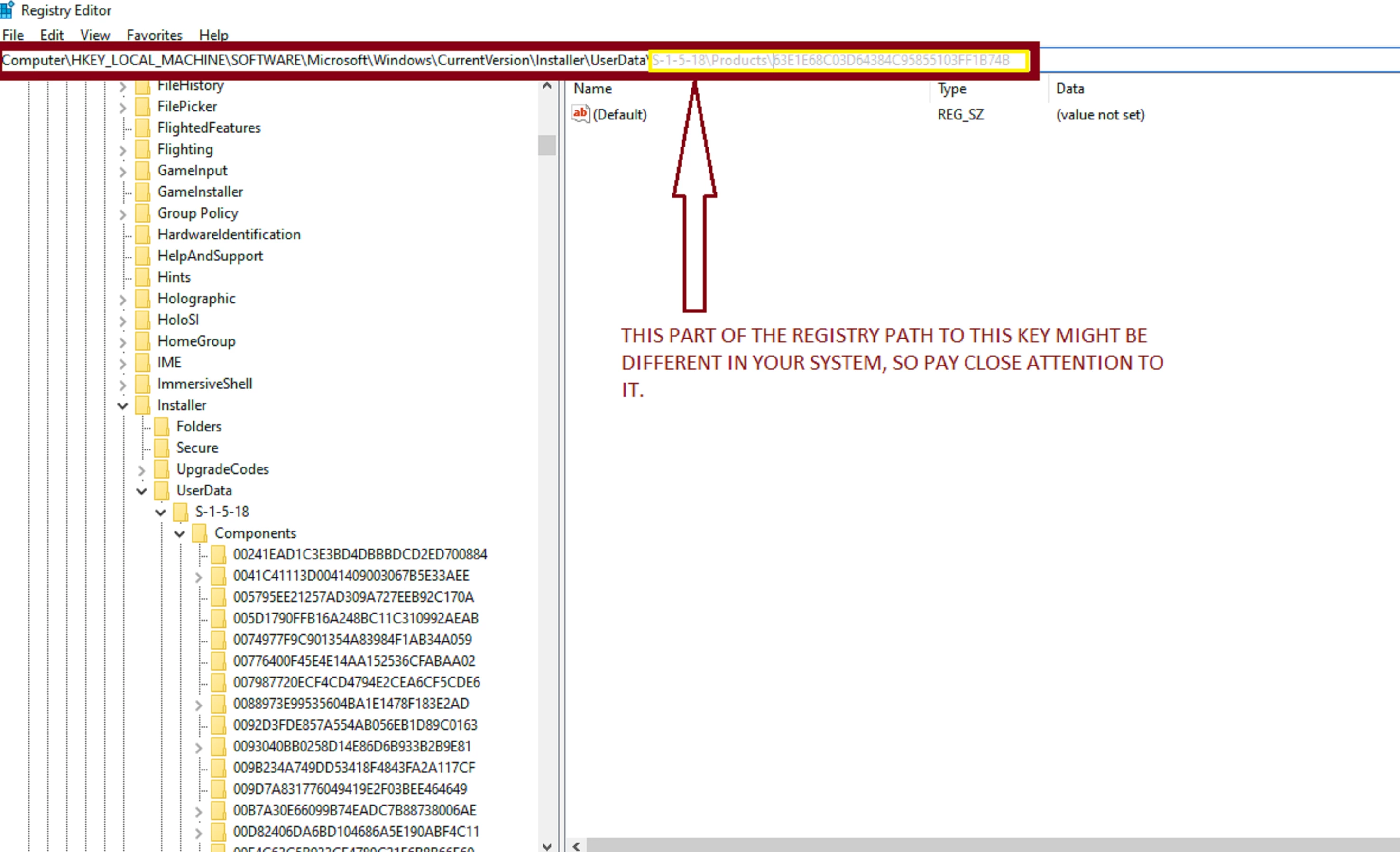 When I run the setup, after choosing the location of the installation, the installation stop and a message appears saying that it is "Impossible to open the key UNKNOWN\Components\...\68AB67CA7DA... . Verify that you have the rights for this key or contact your technical support service" (translated from french)