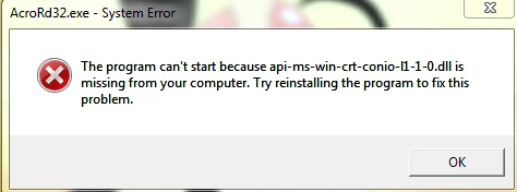 So i went for an update, after that never able to open the PDF anymore, as it hit the error message:api-ms-win-crt-conio-l1-1-0.dll .