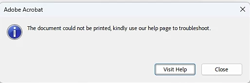 As soon as I try and print the pages I get the popup stating the Following: