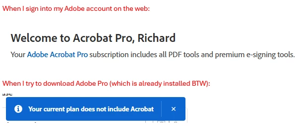 I'm using a properly licensed version of Adobe Pro, installed on my local hard drive. When I start it, it forces me to sign into the web version, whereafter I ONLY have the web version. The local version does not appear to be a useable option. Thoughts?