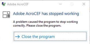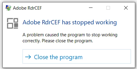 Adobe RdrCEF has stopped working