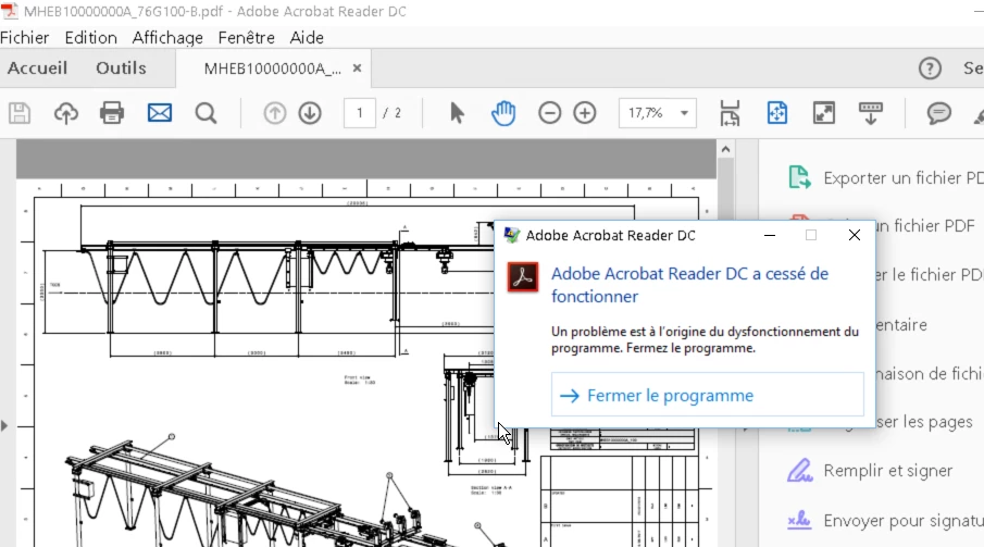 Message d'erreur : "Adobe reader a cessé de fonctionner"