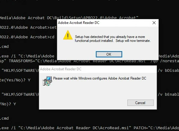 Adobe Reader DC 20.002.20191 - Setup detected that you already have a more functional product
