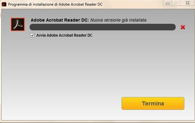 Buonasera, dopo aver disinstallato adobe dreamweaver ( nella disinstallazione ha messo la spunta alla voce "cancella Preferenze" probabilmente deve aver prodotto qualche conseguenza imprevista) ho provato ad aprire un file pdf ma questo non risulta associato ad adobe reader. Ho scaricato dal sito il file di installazione ma nonostante i numerosi tentativi, mi dice che il programma è già installato. dovrebbe essere così, tuttavia Adobe Acrobat reader non compare tra i programmi installati nel pannello di controllo.Cosa posso fare? MI date un aiuto?Ringrazio chi vorrà aiutarmi.