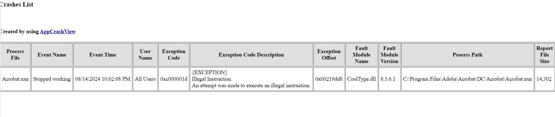 Adobe Reader triggering Windows Error Reporting. Fault module name CoolType.dll.