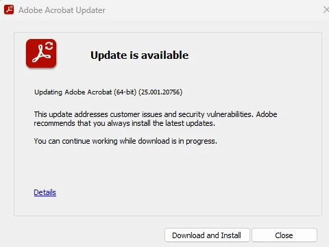 I clicked to update anyway, and it actually installed version 25.001.20813 (possibly why there was bad link for the incorrectly shown 20756 version).