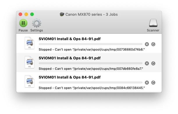 Hi- on both out iMacs (Mojave) and M2s Macbook we can't print pdfs with Adobe Acrobat to Canon MX870 printer. I've tried the Adobe TS tool (https://helpx.adobe.com/acrobat/kb/troubleshoot-pdf-printing-acrobat-reader.html) to set reset CUPs, but I continue to get the  "Can't open "/private/var/spool/cups/tmp/..." message for the Canon MX870 and for the MF4890dw printer I get "Stopped 'Filter' failed.  Apple PREVIEW prints the PDF files fine.We would like to use the Adobe Print Booklet Feature but we can't even print 1 page PDF files in Adobe Acrobat. This has been going on for several months now, but it's getting to be a problem at work. It's causing manhours of issues at work because not all know the workarounds.   I've redownload from Adobe DC Reader 2022.X and the Adobe 2023.X version but there is no difference.  Is there an Adobe fix at all?  Thank you.
