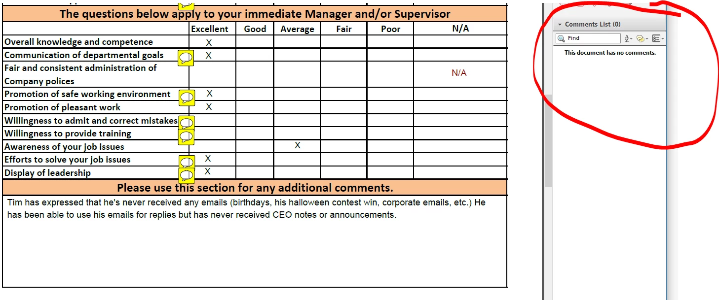 However, after saving and signing the document I can no longer view the expanded comments - in fact, the document says I don't have any while maintaining the comments available icon: