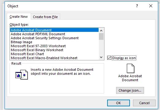 Adobe ReaderDC embedded files in Word 2016 wrong icon