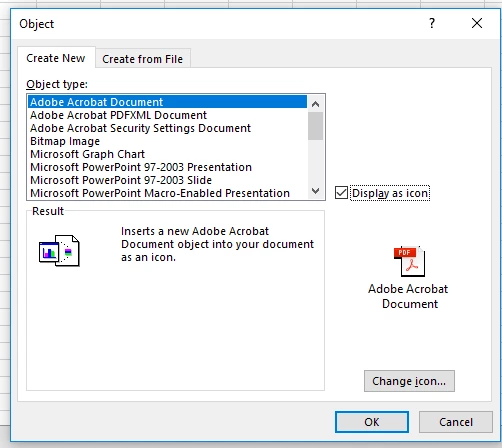 If I try to add the .pdf as an OBJECT I receive a blank ICON.