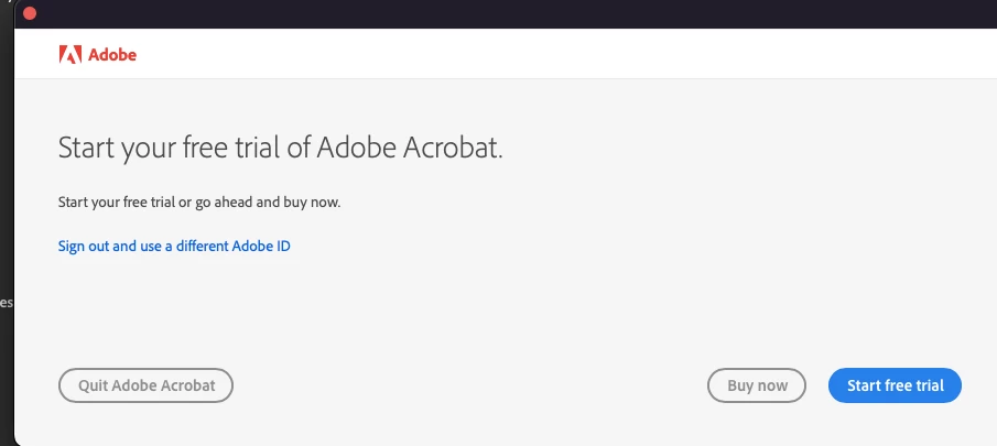 Adobe "Start Your Free Trial" prompt box won't allow me to view pdfs on Mac