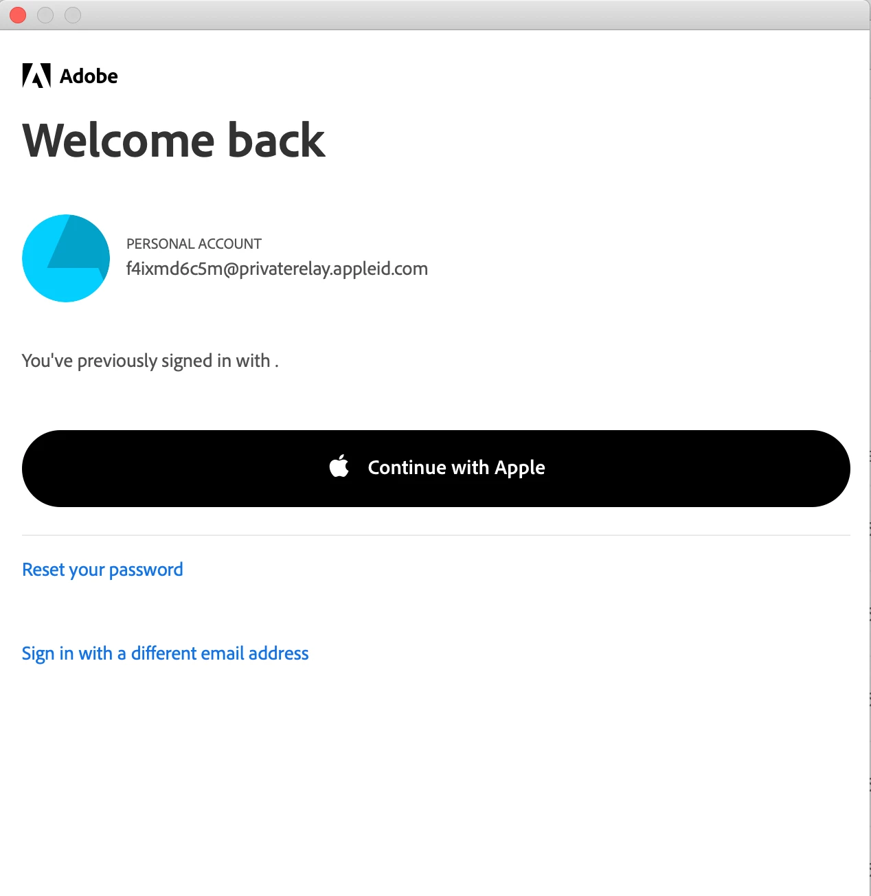 Every time I try to open a PDF I get a pop-up with the Adobe logo that says Welcome back. (I just opened a PDF a day or two ago so I have not been "gone.") It then lists an unfamiliar email address under "Personal Account" and says that I've previously signed in with that address. Um, NO. And it invites me to sign in with another account/PW. This just looks suspicious to me, like it could be malware. (I am using a Mac.)
