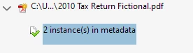 The Advanced Search function claims 2 instances of sensitive data in Metadata. However, I couldn't see those words in Metadata, as accessed from File->Properties, and I even used Redact->Sanitize... and selected Metadata, it was removed successfully, I saved the file, and the Advanced Search function still insists that it's there. Just the fact that one could get confirmation that those words are associated with the file could be concerning.
