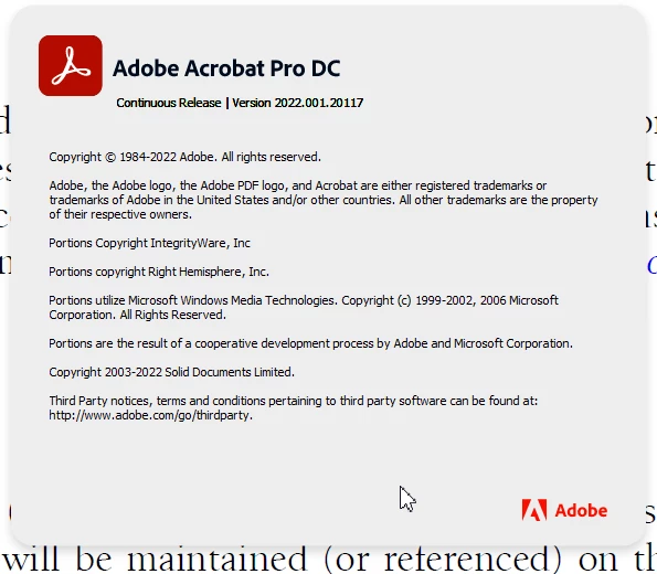And this issue happed to all document. For more details, this is Acrobat version that I used: