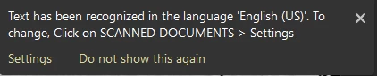 When I enable editing the quality cuts to half and the text becomes unreadable and this popup shows telling me that the file is recognized in English and I can't find Arabic as an option