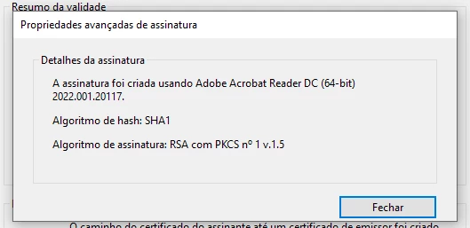 Queria entender também quais os parâmetros e como é feita essa escolha do próprio software sobre qual algortimo utilizar, pois quando eu configuro o módulo PKCS11, referente ao certificado digital, ele utiliza o SHA256, mas quando o Adobe acessa o certificado que está no repositório de certificados do Windows é utilizado o SHA1.