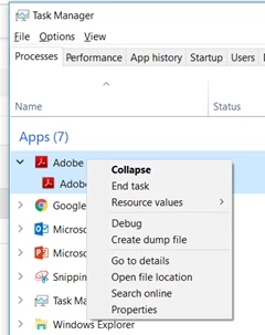 9. Adobe crashes, shuts down completely - event ID 1000 is entered in the event log (AcroRd32.exe crash on Windows.UI.XamlHost.dll)