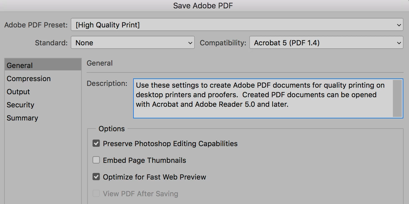 You will get a dialog box that lets you select an existing preset or customize the settings. There are four tabs (plus the summary) on the left where you can customize.