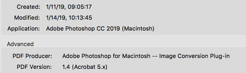 Also, what does it say for you in Acrobat > File > Properties in this section?