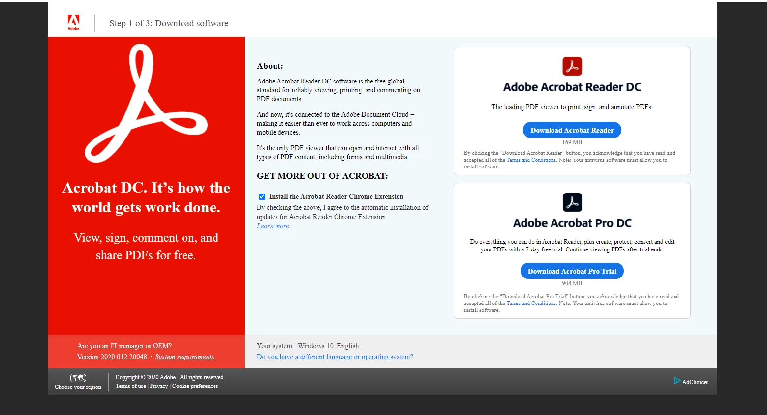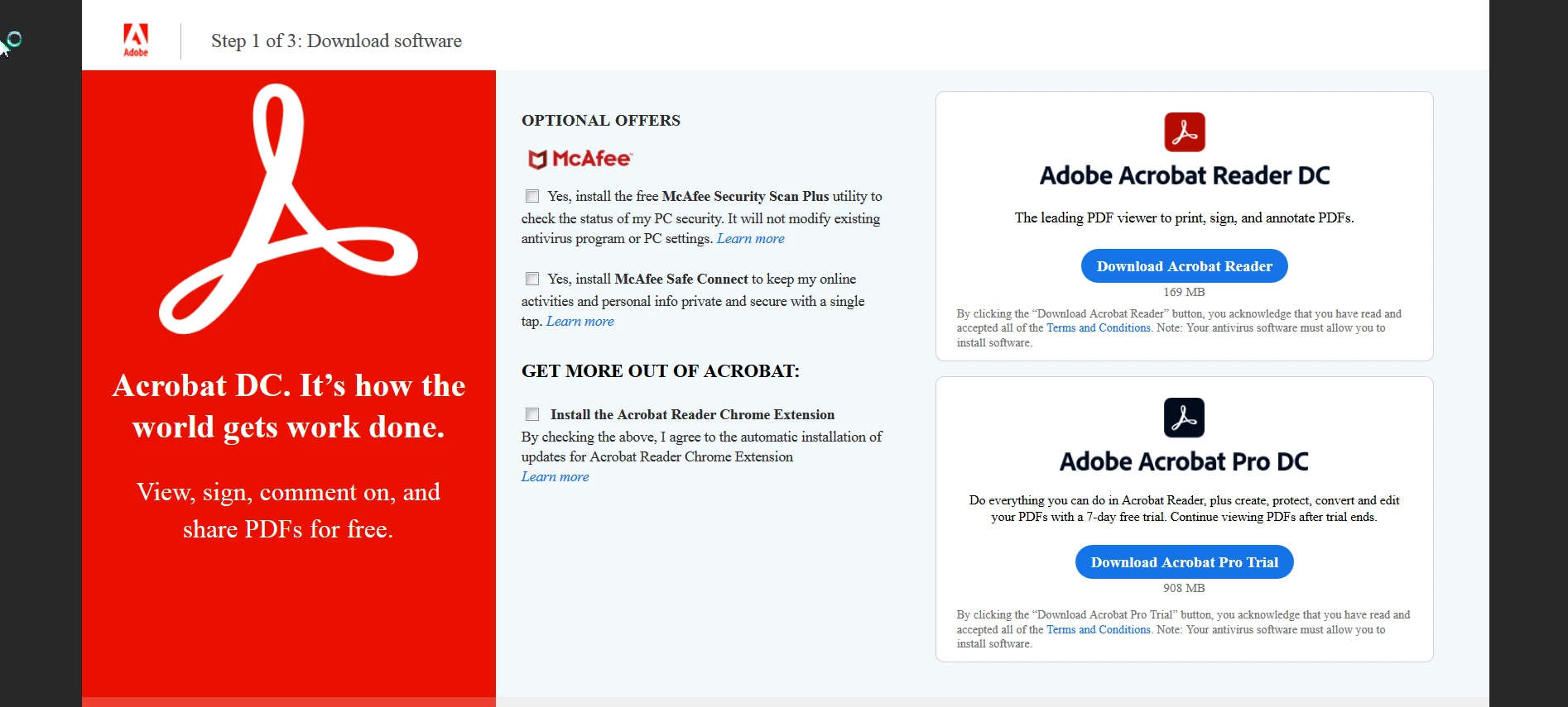 Today I tried to reinstall acrobat reader DC from https://get2.adobe.com/reader/otherversions/ as my current installation is giving some issues.