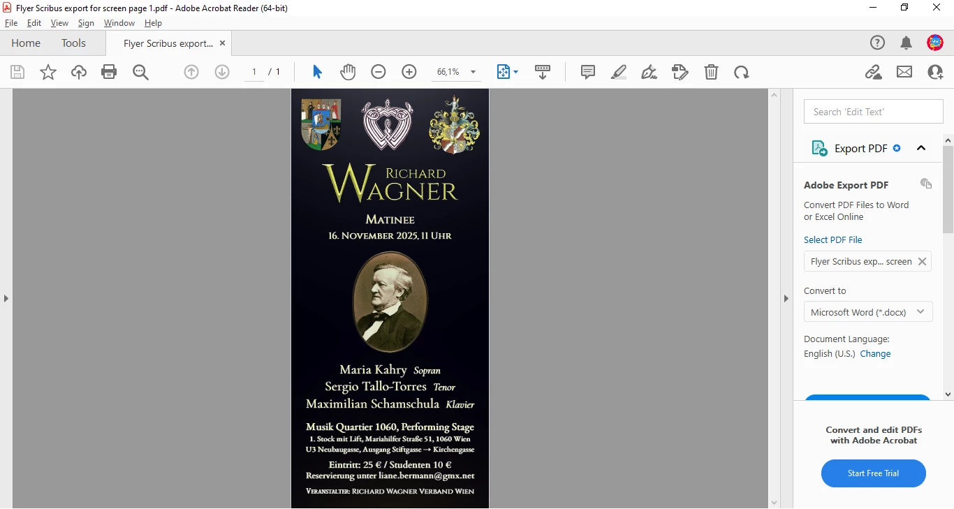 I have a PDF file containing some text that should be color blended with the background using the blend mode "exclusion". However, the color of the text is displayed incorrectly in Adobe Acrobat Reader. At first, I thought that this is a problem with the program that created the PDF file and that the PDF file is flawed, but I have opened the file in several different PDF viewers and/or editors, including Wondershare PDFelement, Icecream PDF Editor, PDFgear, Okular and Sumatra PDF, as well as in various web browsers such as Firefox, Google Chrome and Microsoft Edge, and they all display the file contents as they look like in the program with which I created them. Even the iPhone version of Adobe Acrobat Reader displays the file as intended, so I very much assume that this is a problem of Acrobat Reader for Windows. The problem only seems to occur below a certain zoom level; when zooming in very closely, for instance to 800 %, the text appears to be displayed correctly.