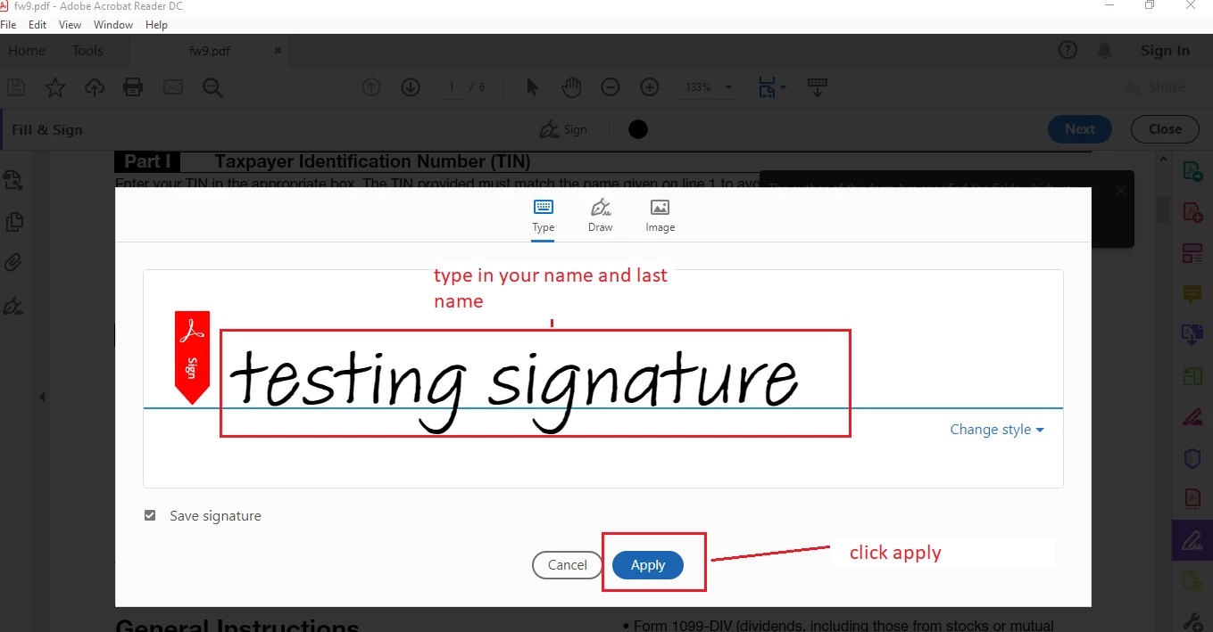 Can't add date in a "fill and sign" W-9 document. How do I do this? [2019]